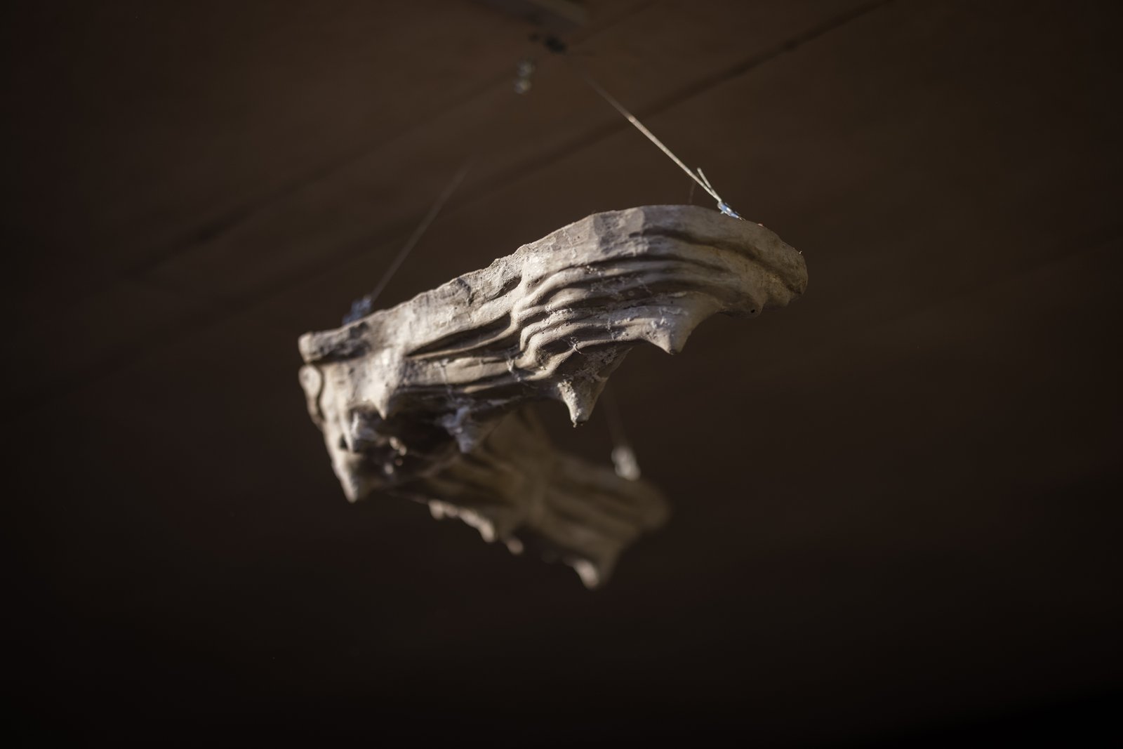 The exhibition of the sculpture studios at the Academy of Fine Arts in Prague is inspired by the book of the same name by architect and theorist Juhani Pallasmaa, which explores the perception of space in relation to our physicality. A return to physicality and sensory perception in all its breadth is one of the most timely and, at the same time, most natural ways to begin reorienting ourselves in the space of the contemporary world. The absolute dominance of visuality, which over the centuries has completely subjugated Western culture at the expense of the other senses, has disrupted our relationship with the world in which we live. Our minds are almost constantly immersed in illusory virtual worlds dominated by marketing strategies with superficial slogans, whose aggressively attractive visuals are designed precisely to be irresistible. The flood of endless visual stimuli demands our full attention and pulls us so deeply in that we cease to perceive the sounds and smells around us, or the humidity and flow of air. Yet the loss of our comprehensive sensitivity to the world around us has far-reaching consequences not only for our perception of our own identity and relationships with other beings, but also for the entire ecosystem of which we are an inherent part.