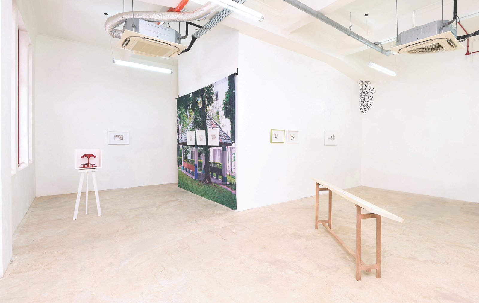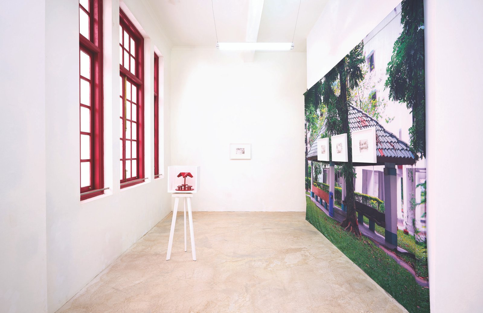 In this context, the pavilion also serves as a mnemonic structure and “monument” for its capacity to evoke formative memories and its potential to accommodate other structural significance. Through paintings on photo paper, collages, sculpture, and narrative writing, Zulkhairi inflects the vernacular structure with play and desire.