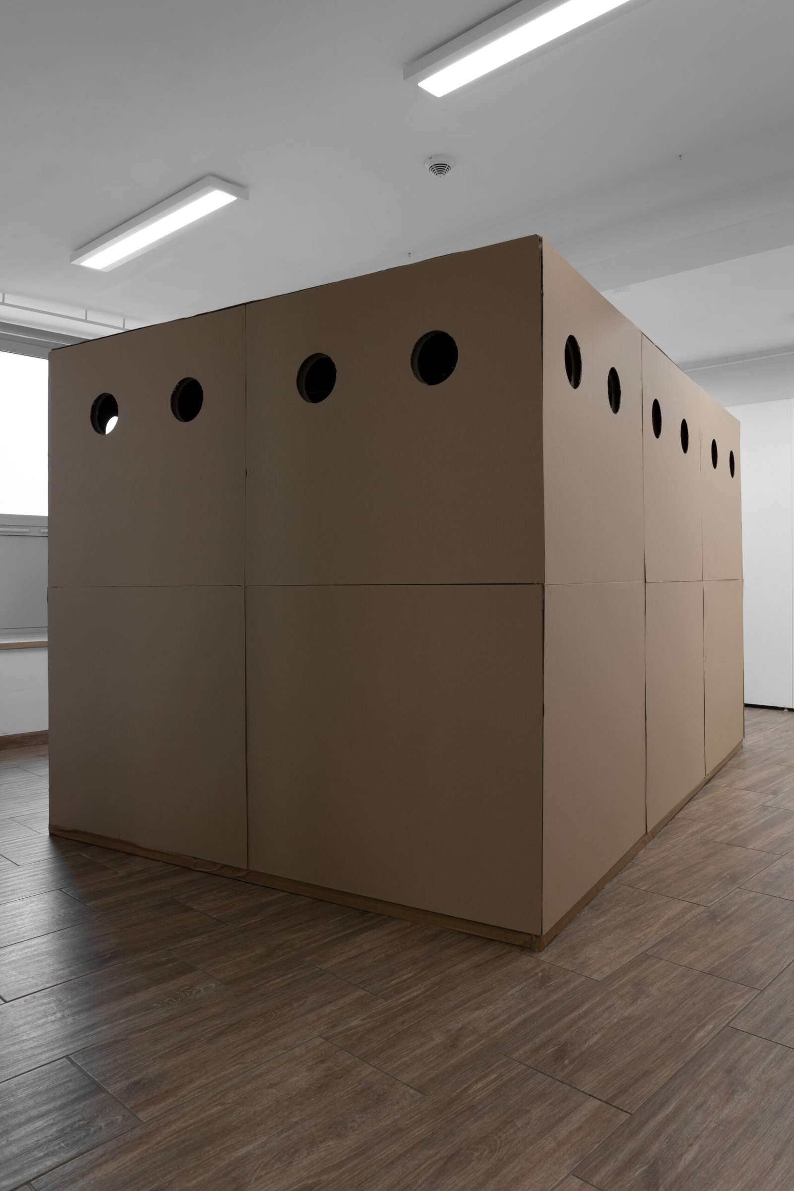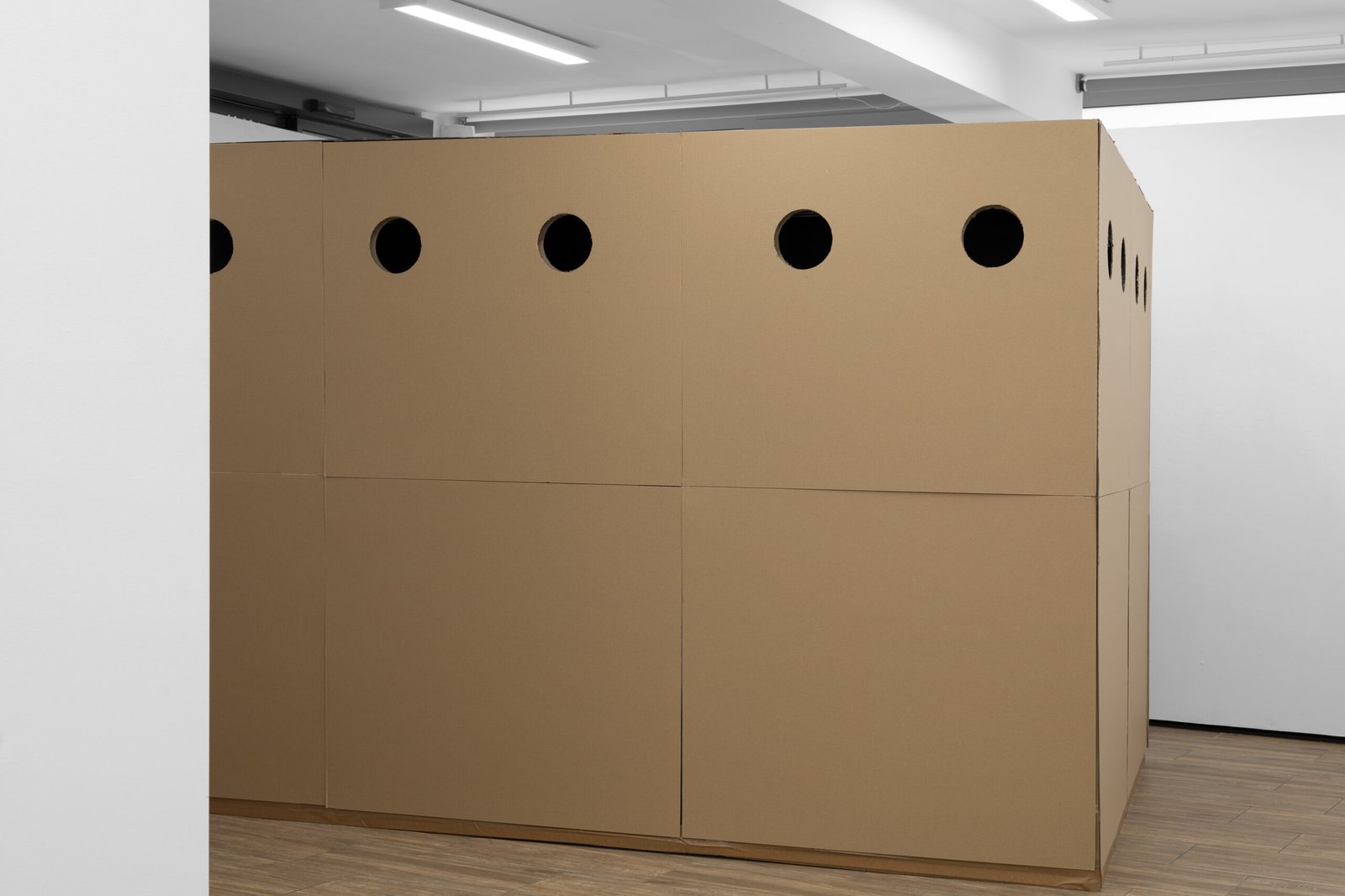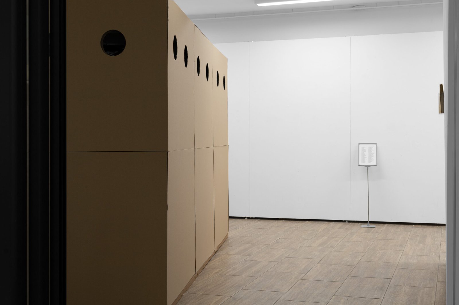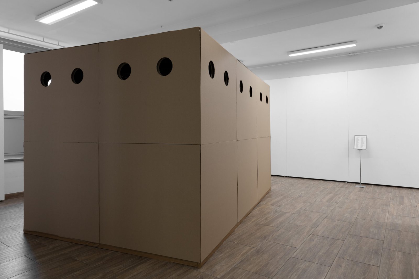 The contemporary phase of art, defined by Jerzy Ludwiński as the processual construction of mental structures, finds its realization here on a 1:1 scale. In line with Stephen Wright’s postulate of “low ontological intensity,” the large-scale form in the exhibition space infiltrates the logistical order, abandoning representation in favor of a real-world establishment of the transport situation. This presence, however, isn’t for visual dominance, but rather for marking a physical boundary, forcing a strategy of “using the interstices.”