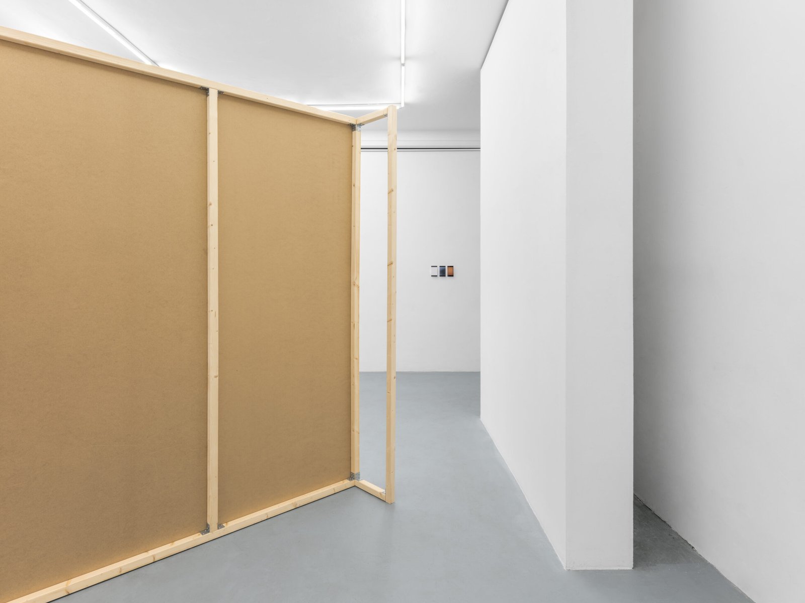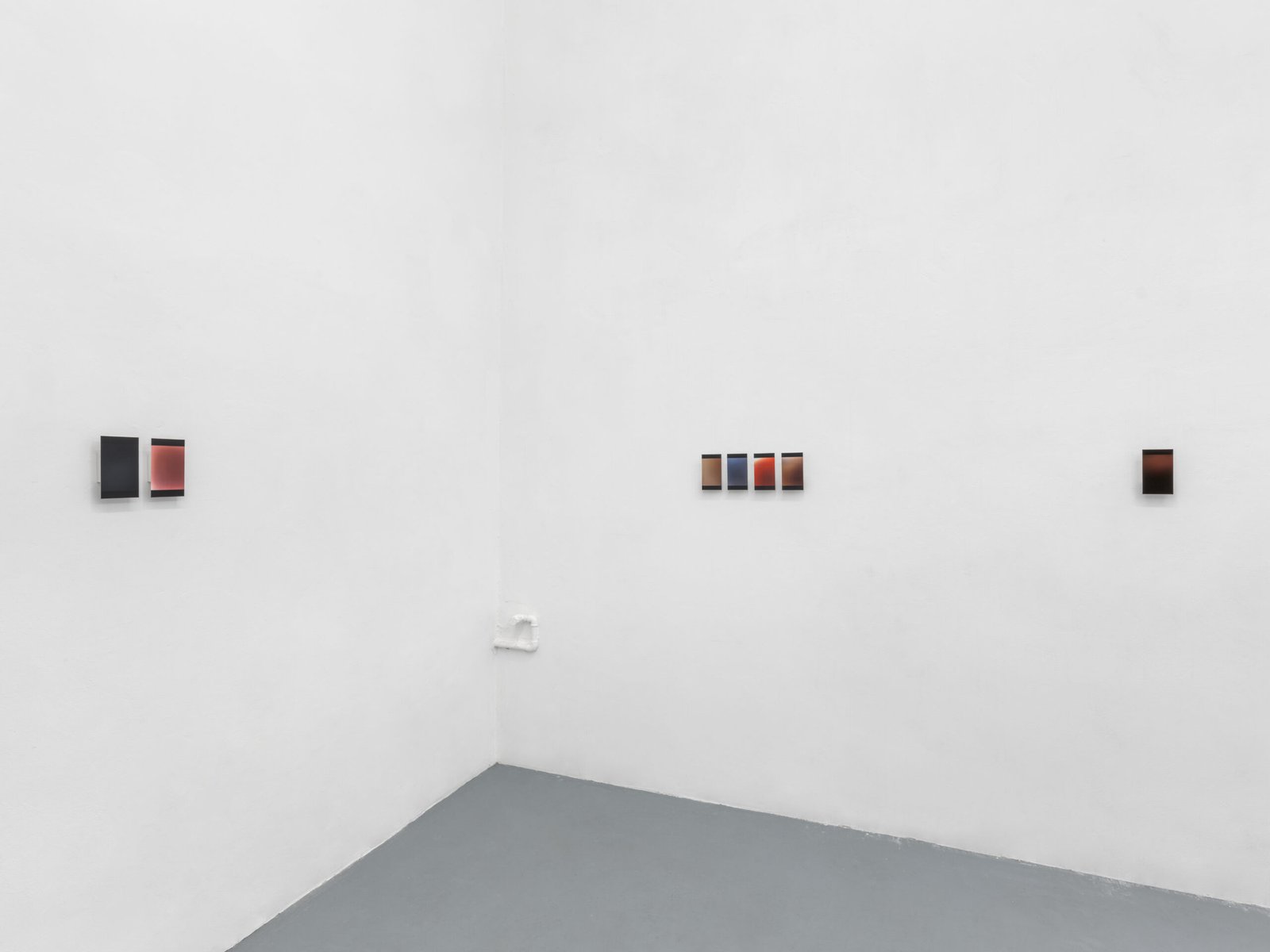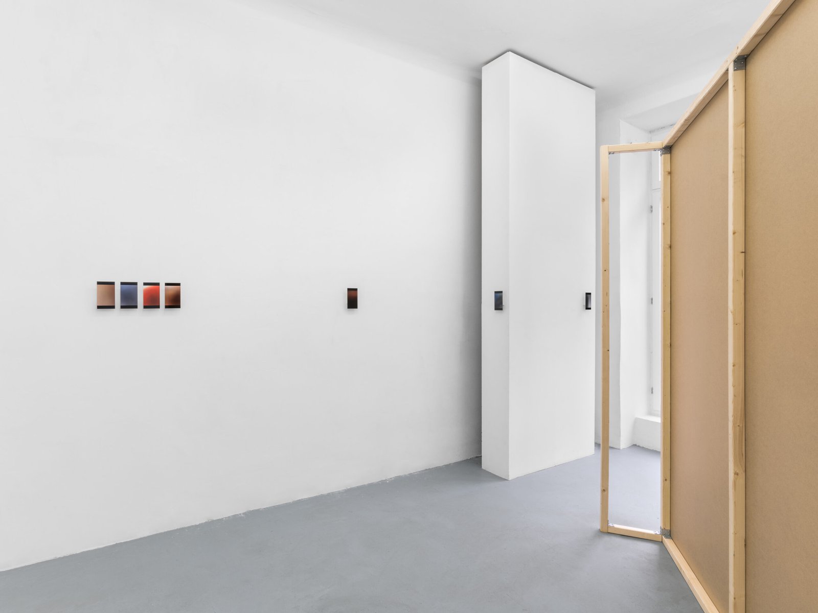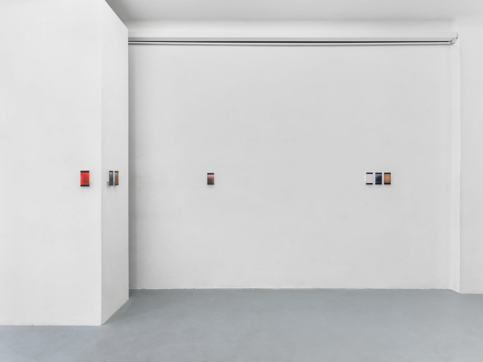 At one end of the wide arc that Urban draws is a series of monochrome screens: sublimation print on aluminium, a broad colour spectrum, in classic 16:9 format and barely larger than the mobile world access in your pocket. We later learn that these are profile pictures Urban takes as screenshots from a queer dating website. In just about every colour and still matching the grey Berlin sky, anonymised privacy is plastered across the filtered public sphere of social media dating.
