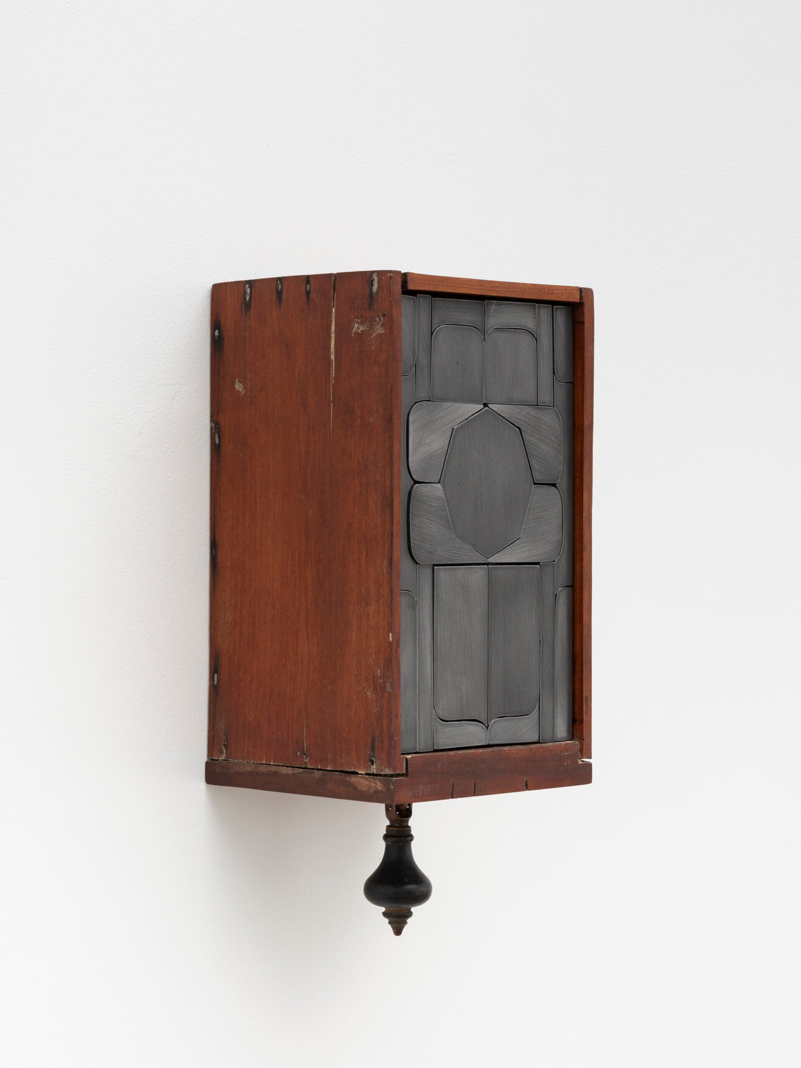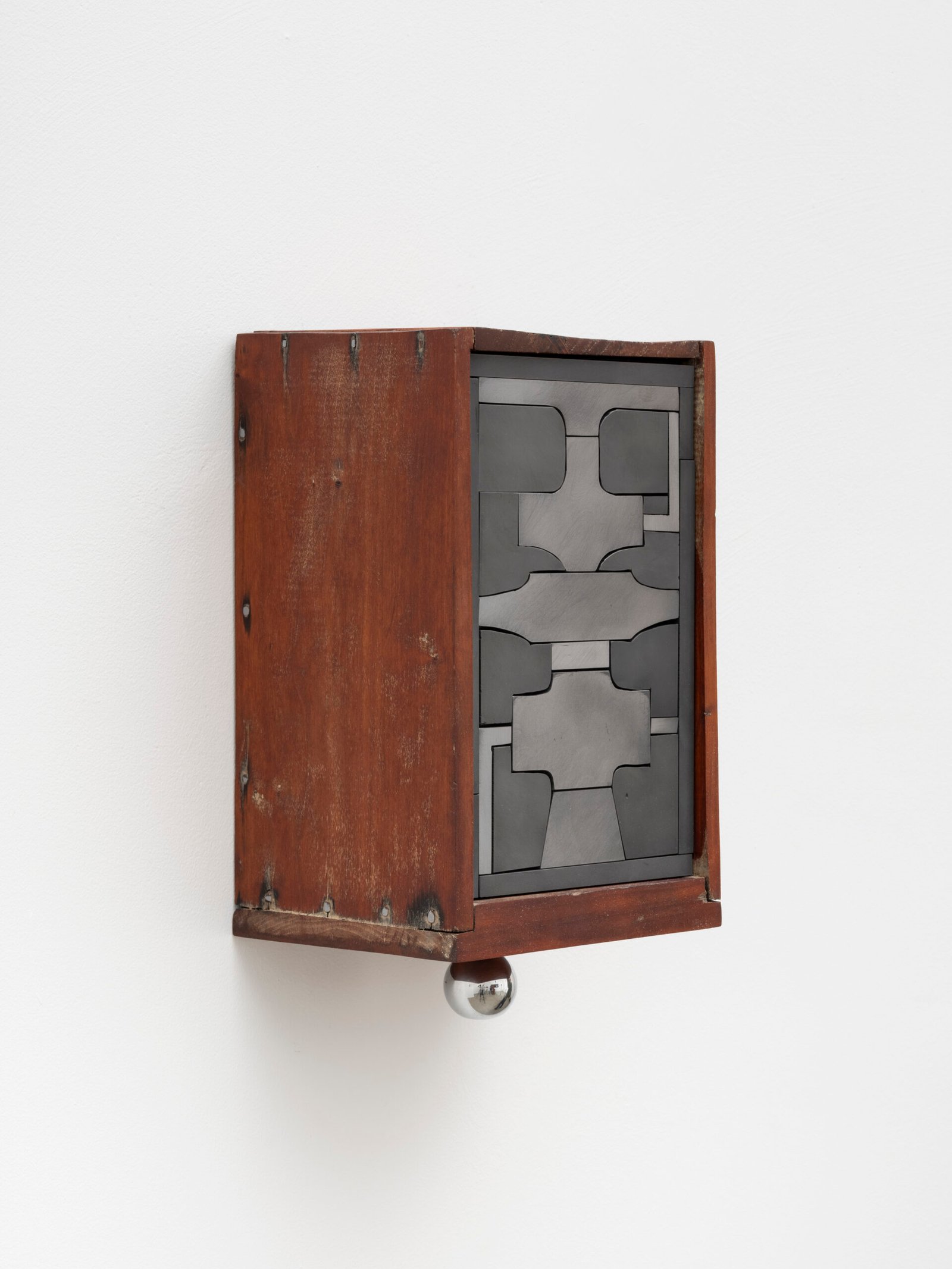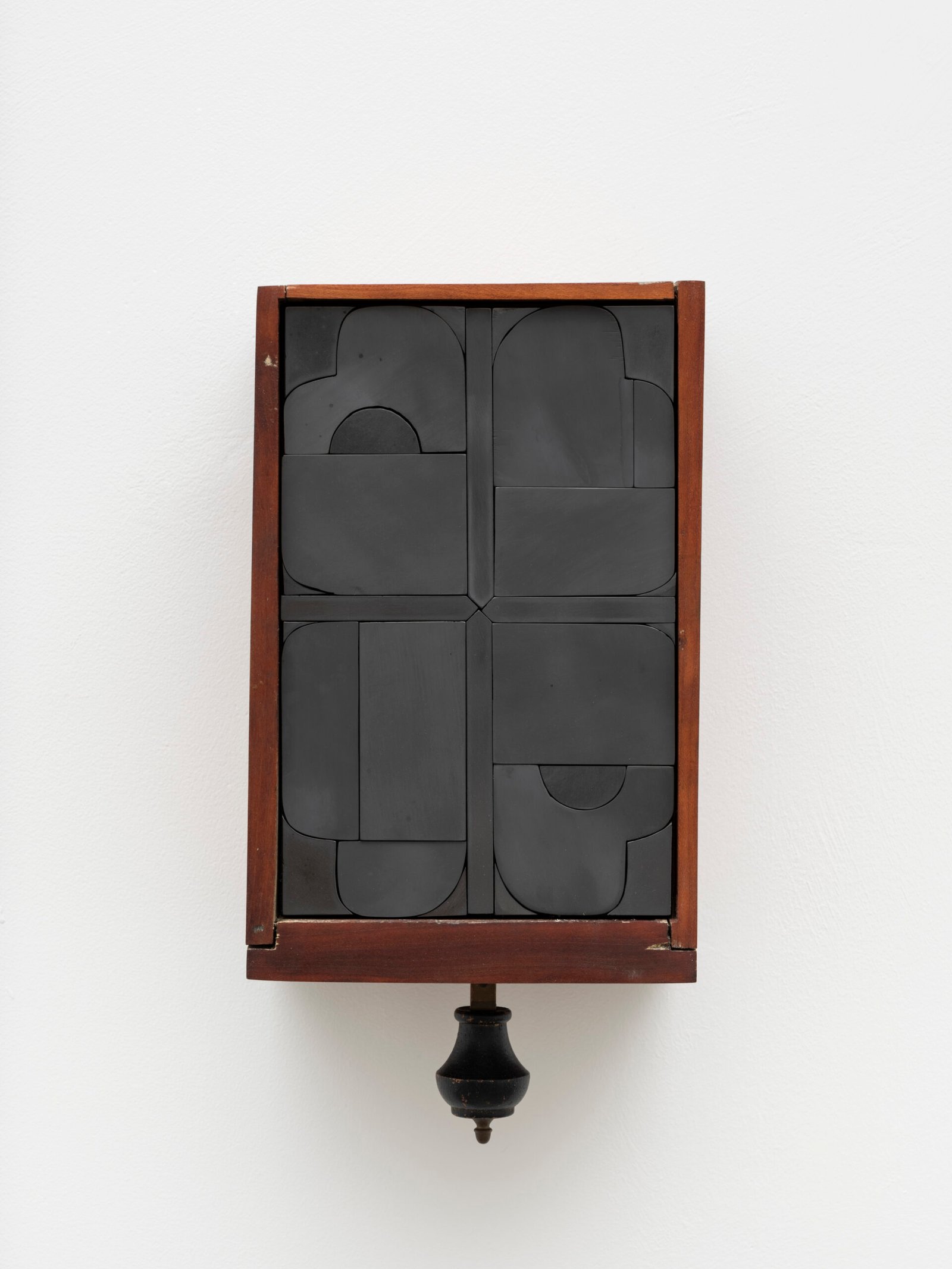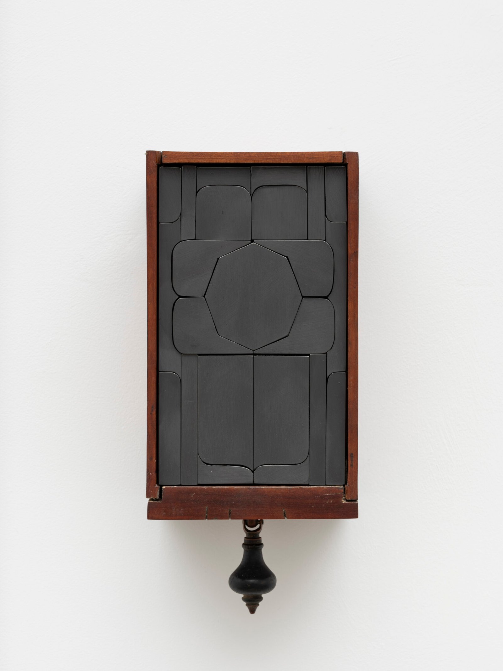 Set into their deep wooden frames, their shape and size recall reliquaries or miniature shrines, their jigsaw faces evoke