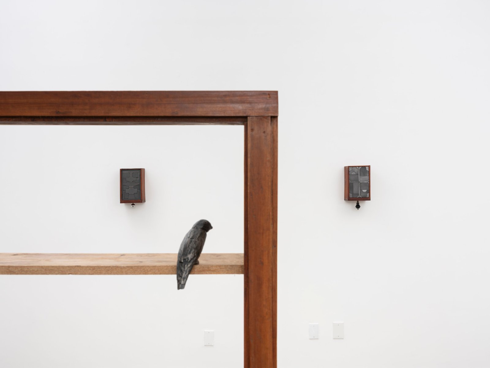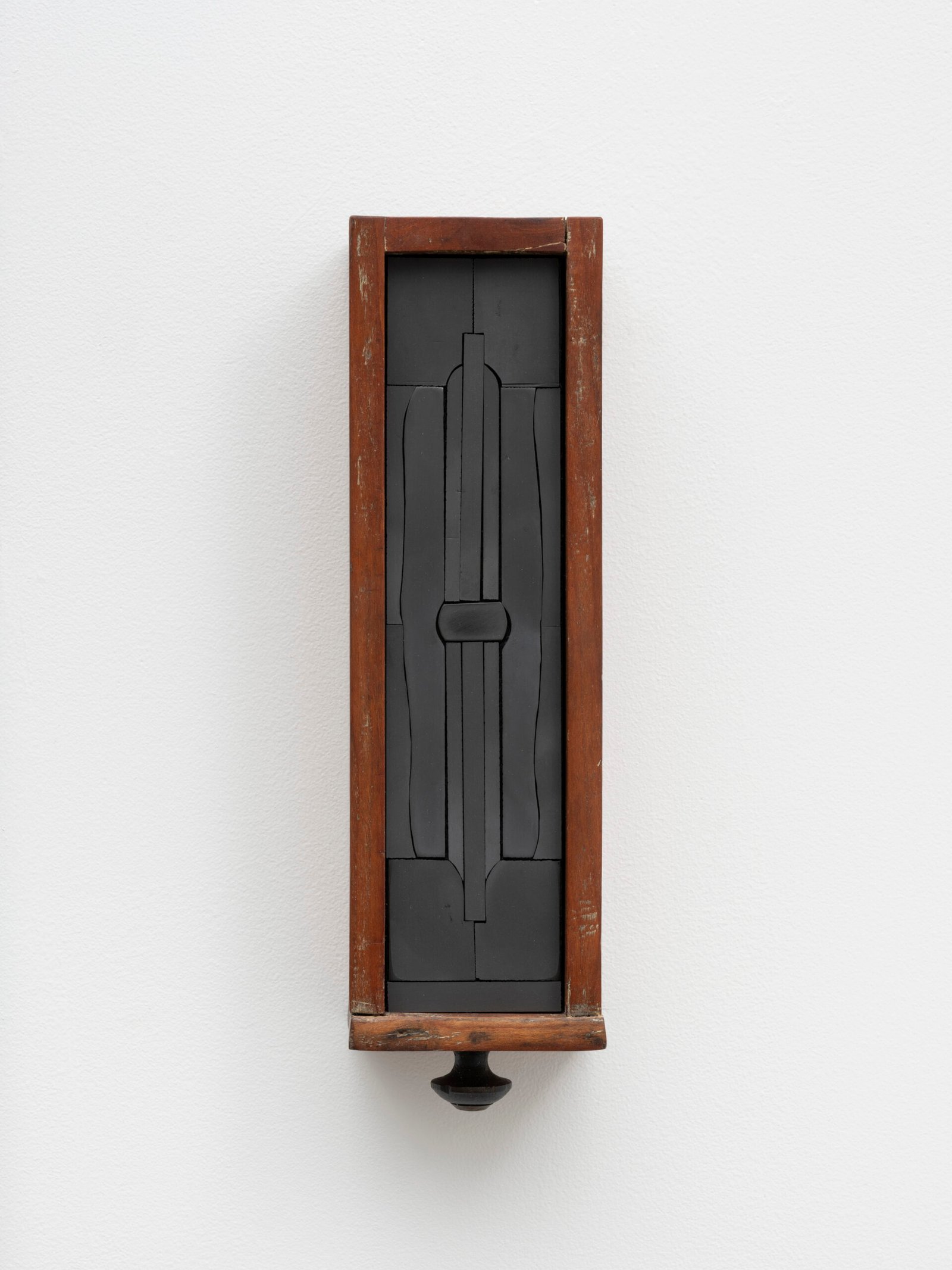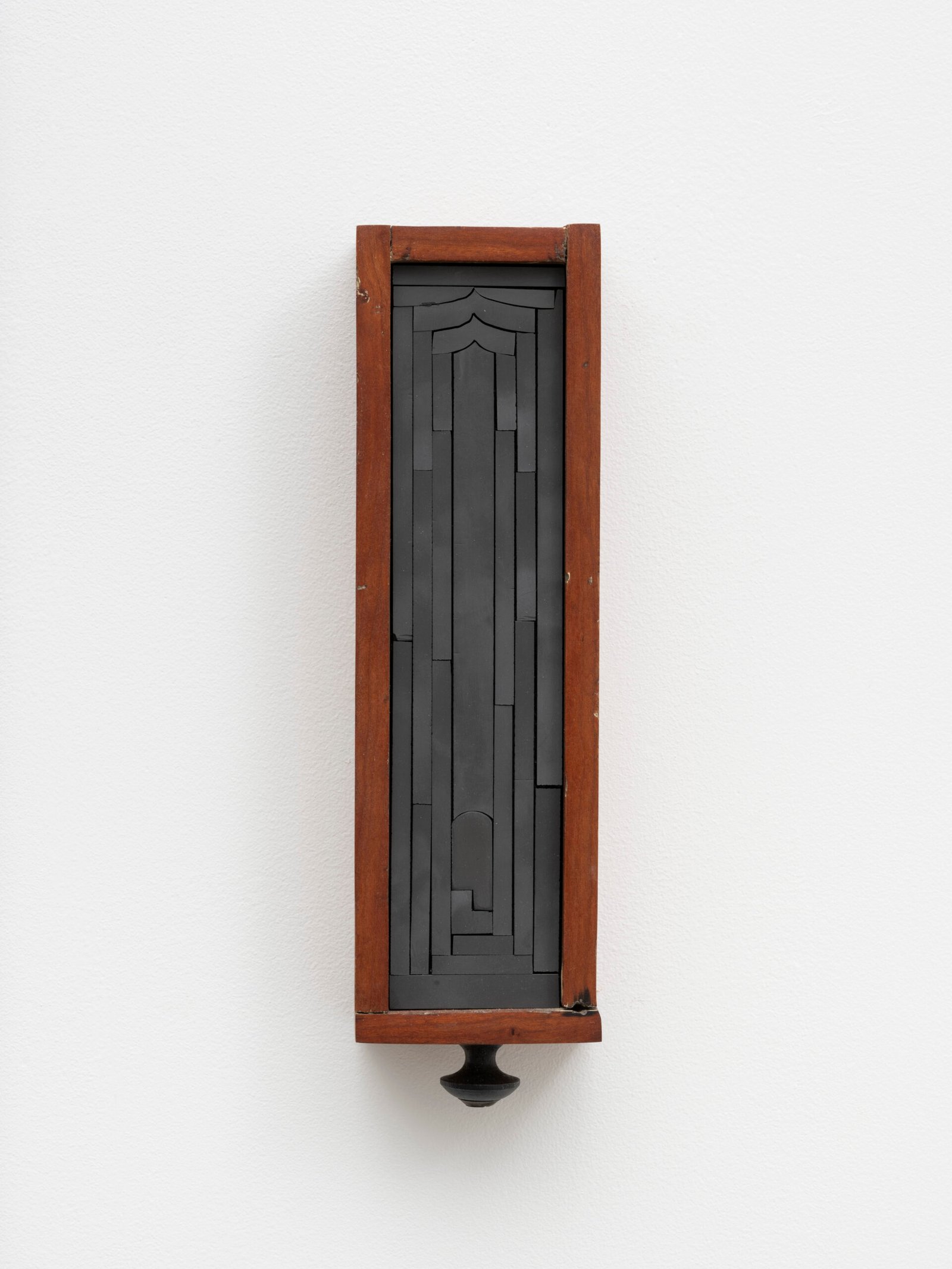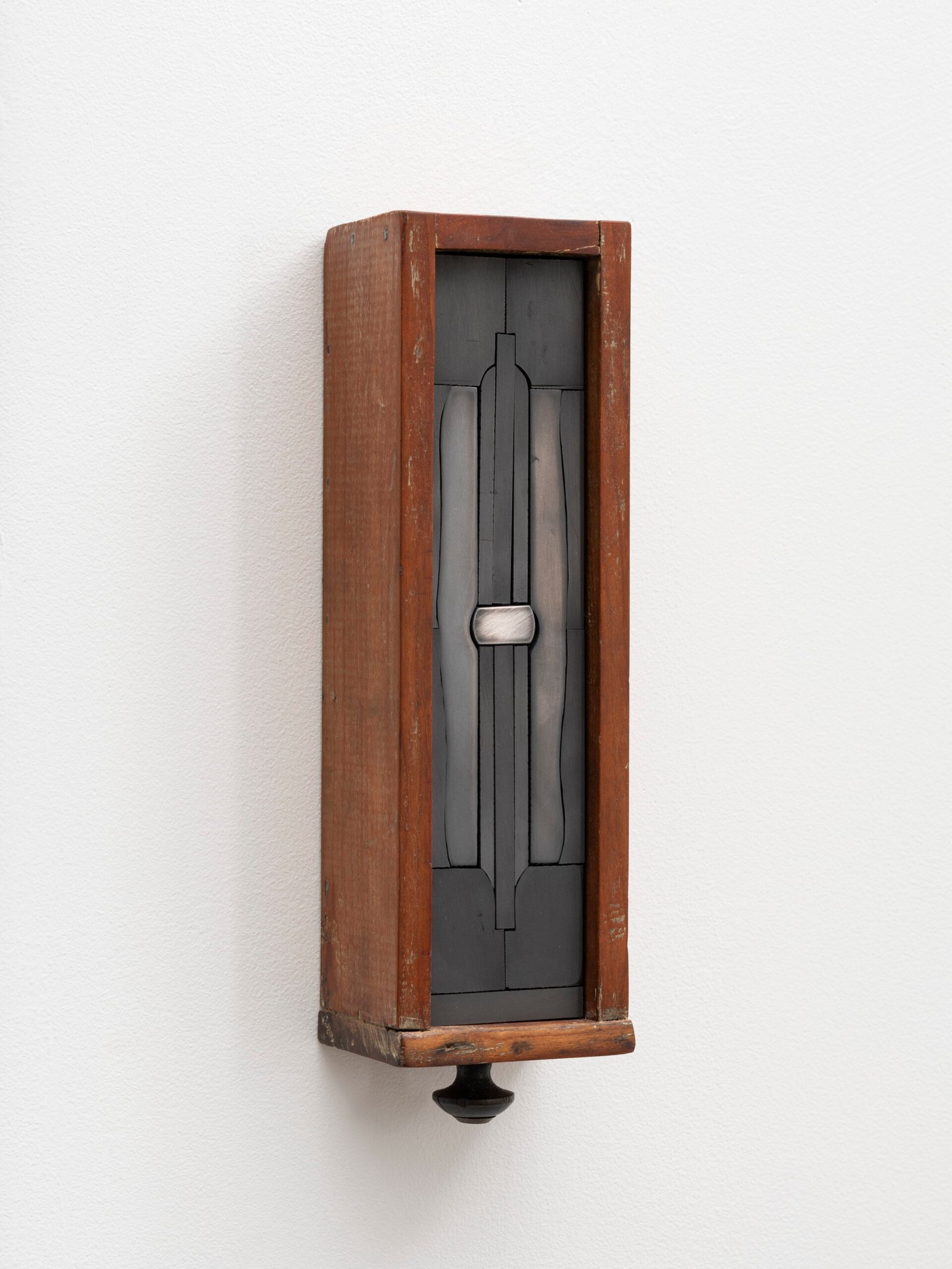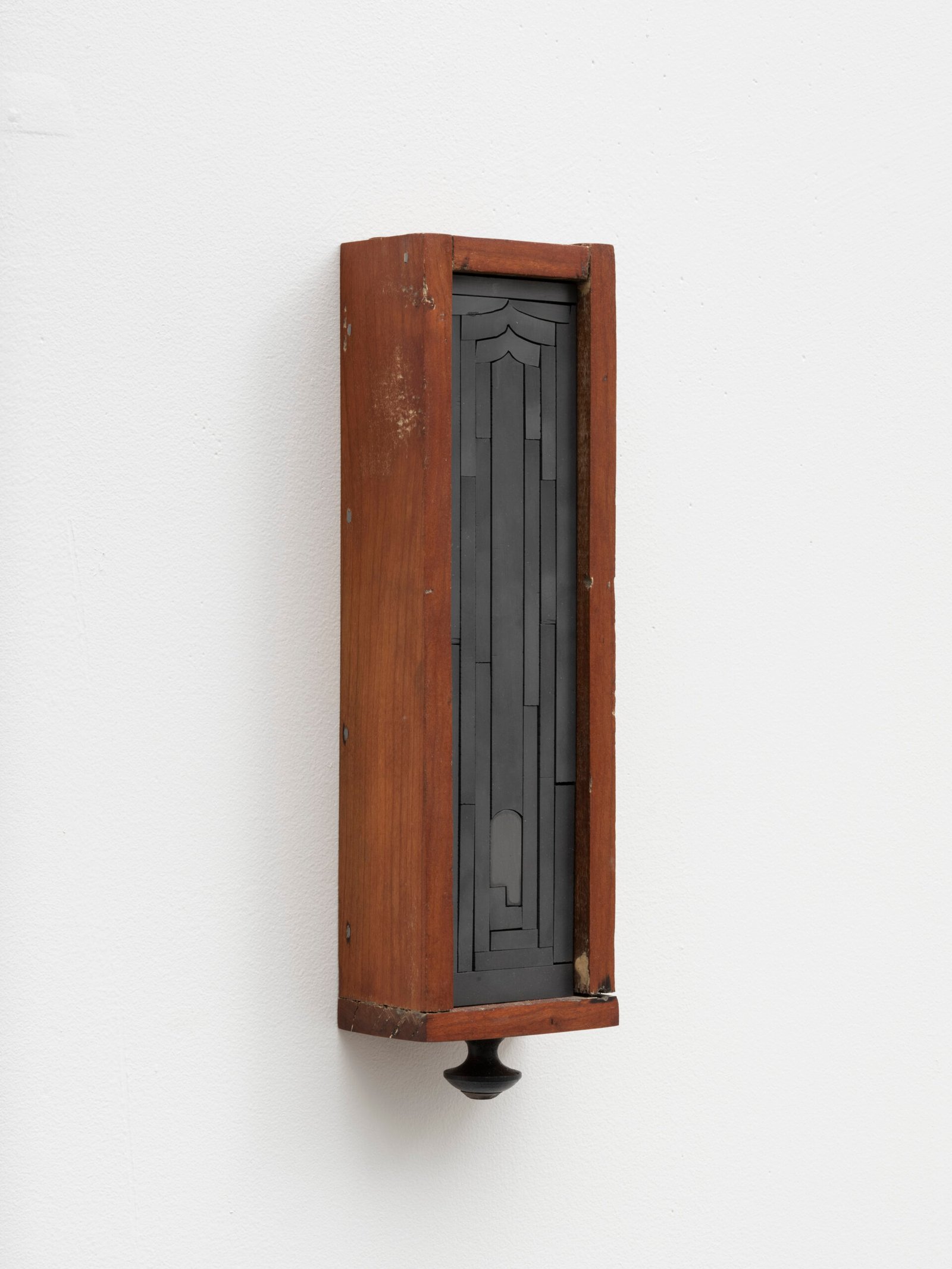 Set into their deep wooden frames, their shape and size recall reliquaries or miniature shrines, their jigsaw faces evoke