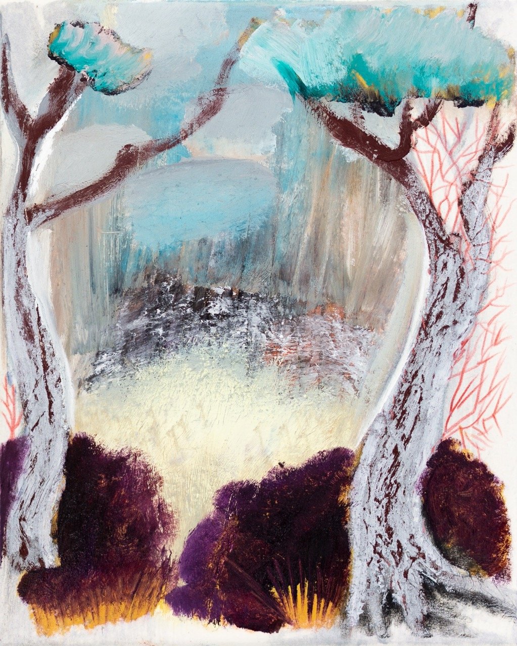 The exhibition project @park brings together landscape depictions that reveal the artist’s multifaceted view on nature and her keen sense of composition. In her works, we encounter mountains, trees, and floral motifs arranged in symbolic, dreamlike scenes, and gaze upon natural spaces where mysterious creatures lurk.