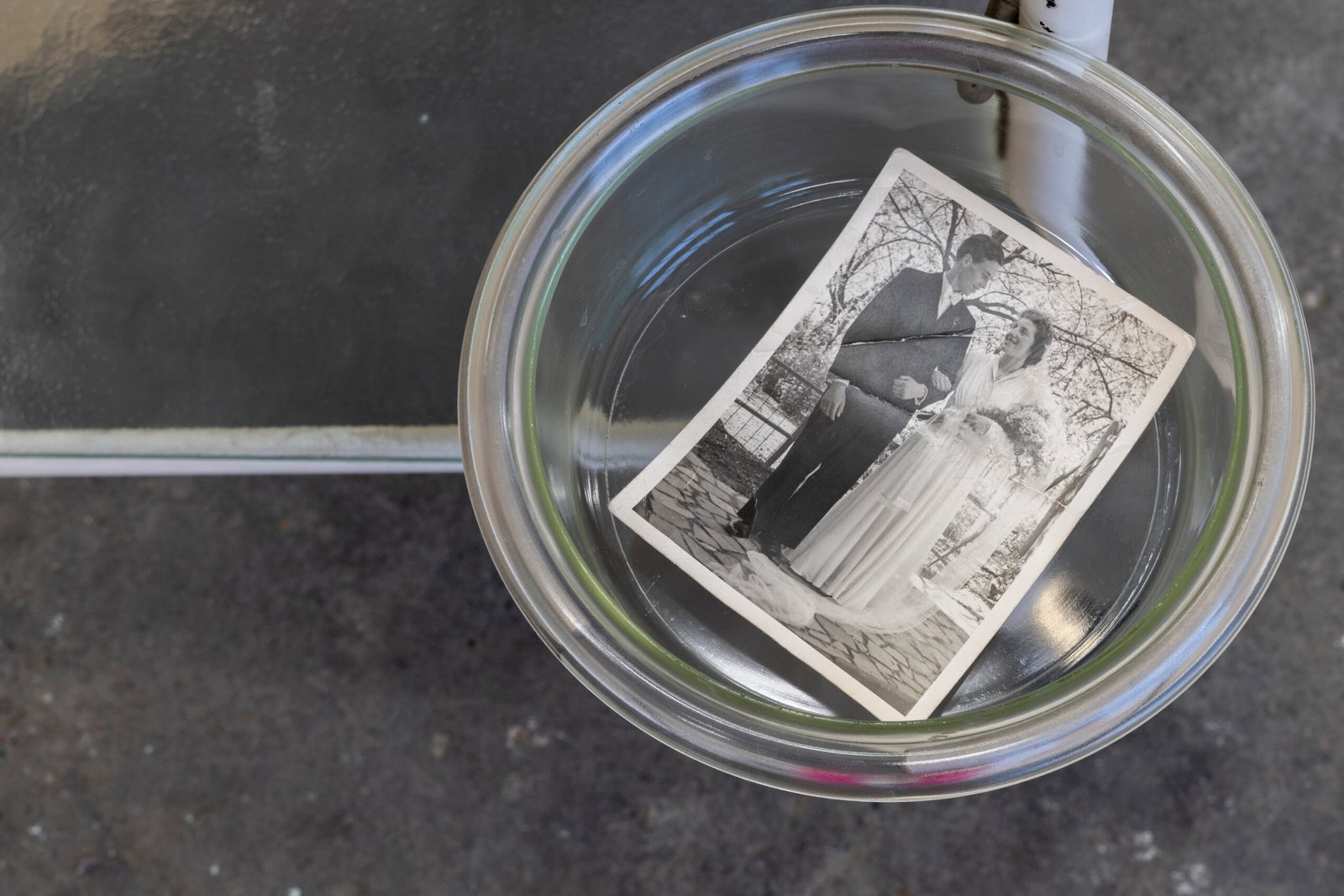 The exhibition presents photographs and objects that mark both farewell and transition. Taken